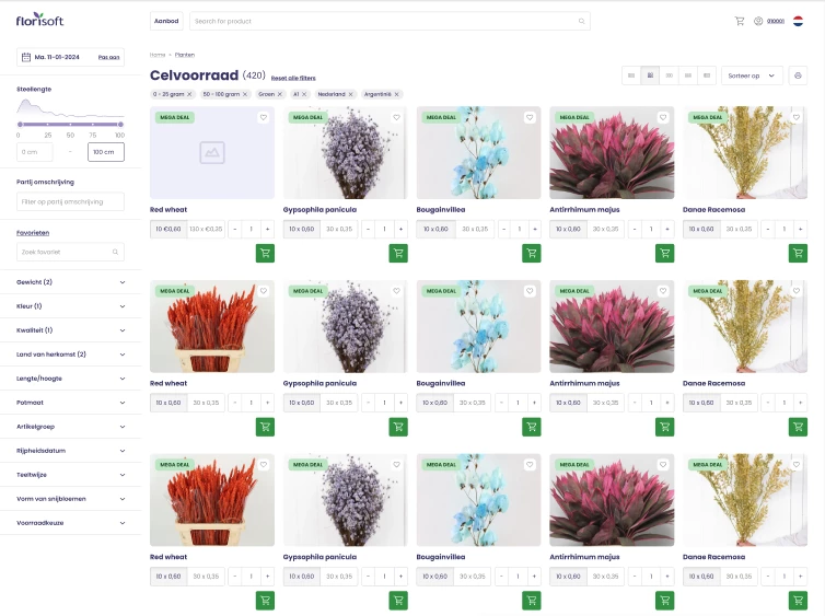 Ons huidige platform ‘FloriShop’ ondersteunt ons al jaren met veel succes. Met ons nieuwe platform zetten we alvast de volgende stap: een e-commerce-oplossing die sneller, gebruiksvriendelijker en toekomstbestendiger is, zodat we onze klanten nog beter van dienst kunnen zijn.